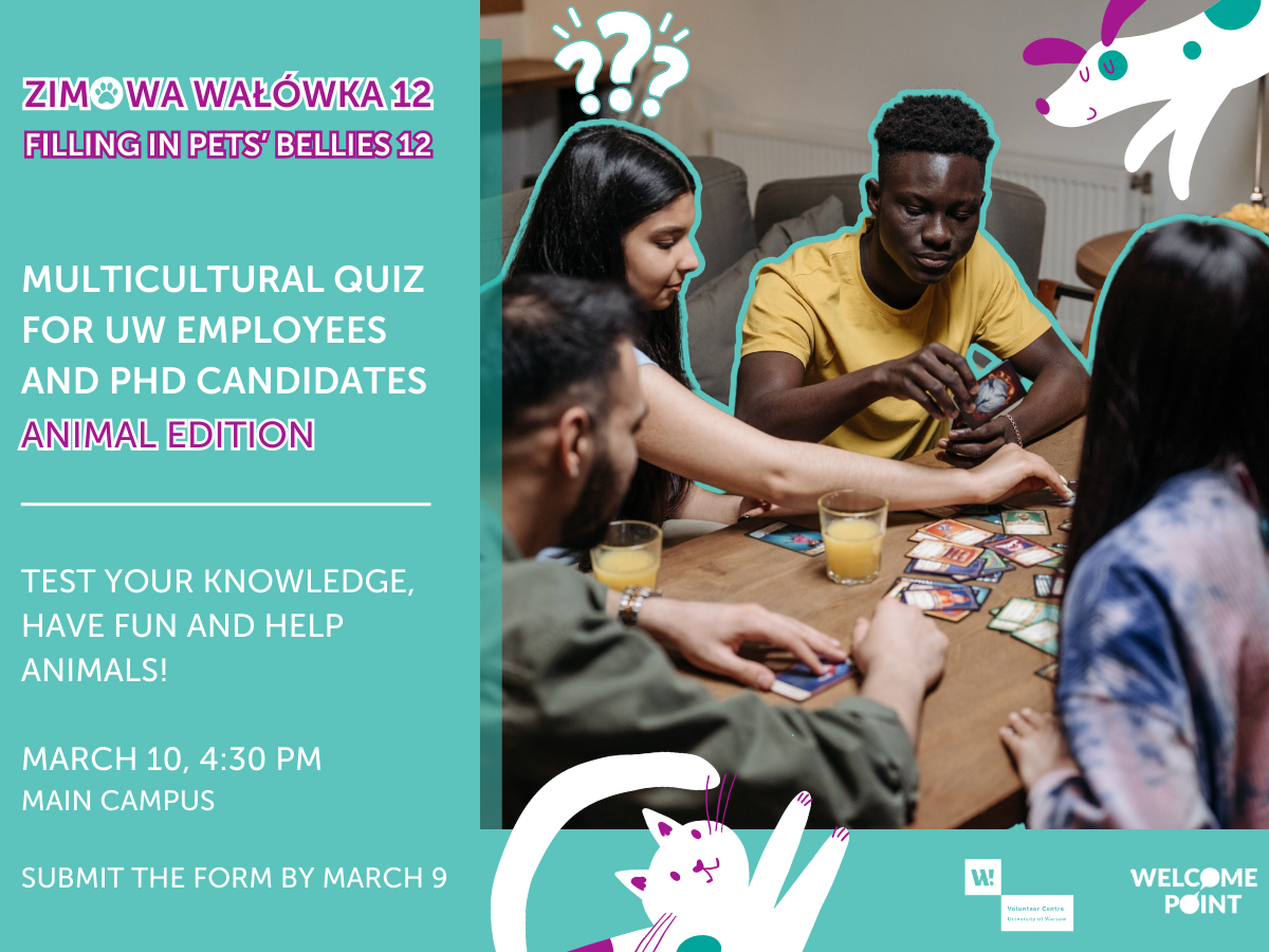 Get ready for a friendly competition on March 10th, where international and Polish employees and PhD candidates of the University of Warsaw come together to test their knowledge and have fun. You don’t need to be a trivia expert to enjoy it! Before each question, teams will have time to brainstorm together.