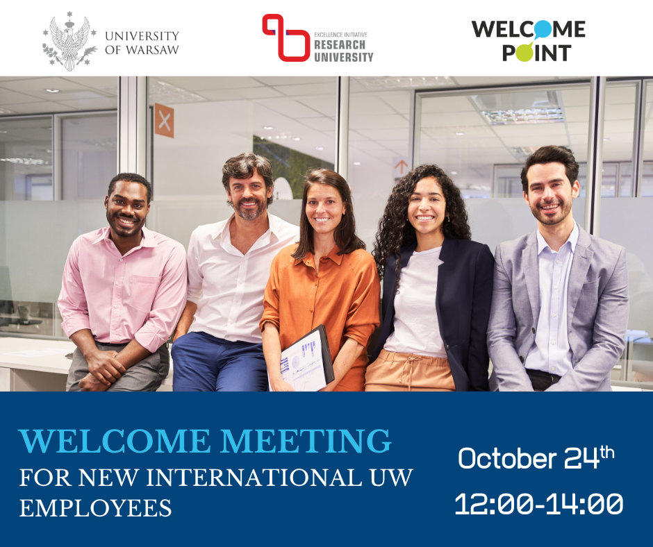 We cordially invite all new international UW employees to join the Welcome Meeting to facilitate your first steps at the University and in Warsaw!